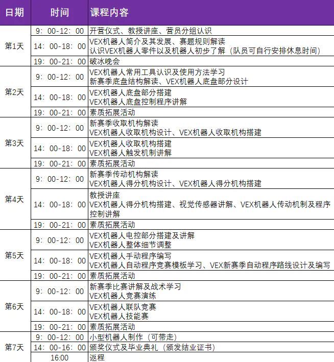 夏令营日程详细安排: