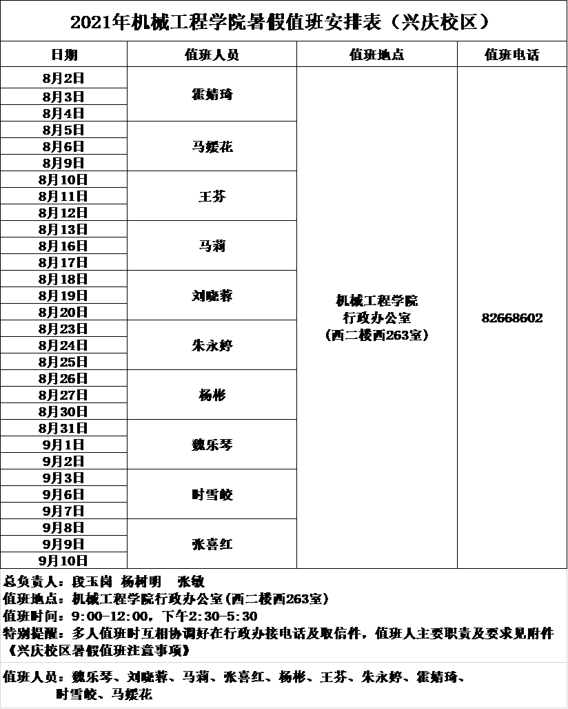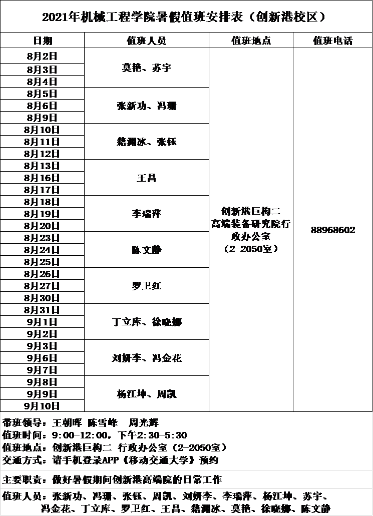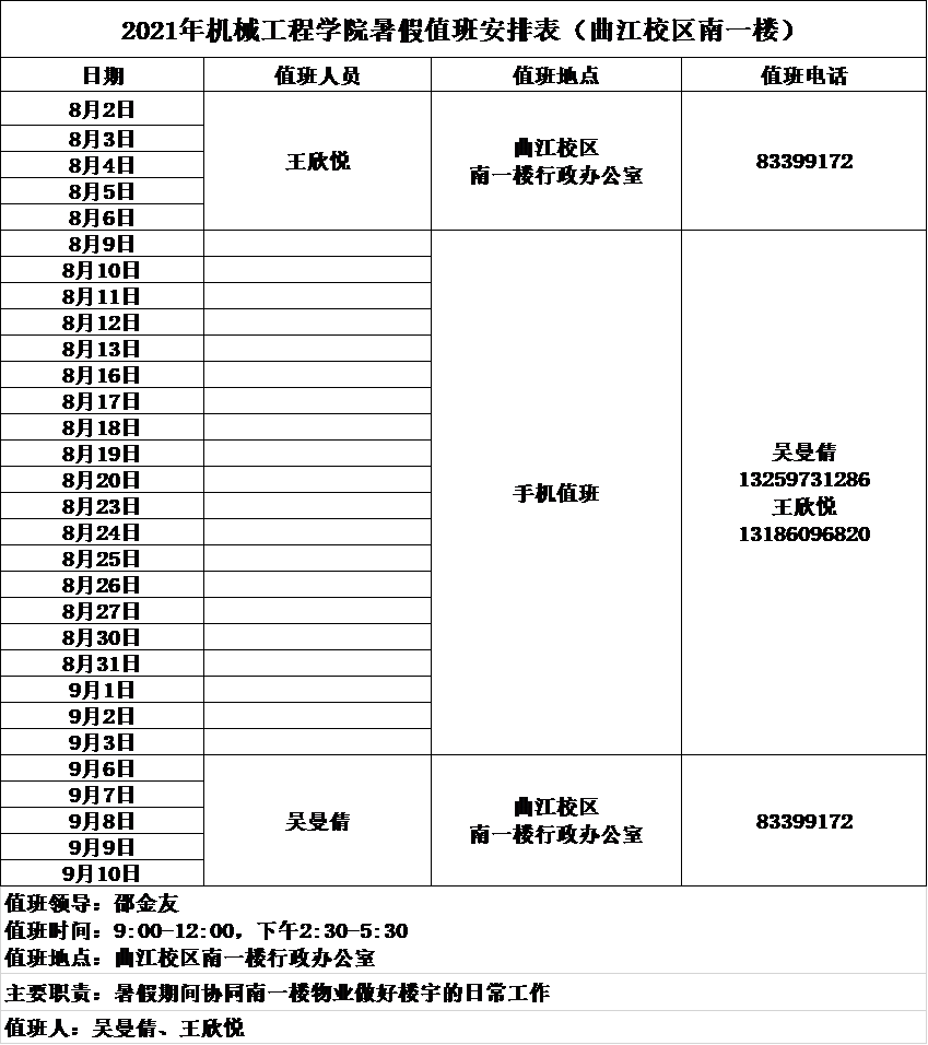 2021年3308维多利亚线路检测中心暑假值班安排表